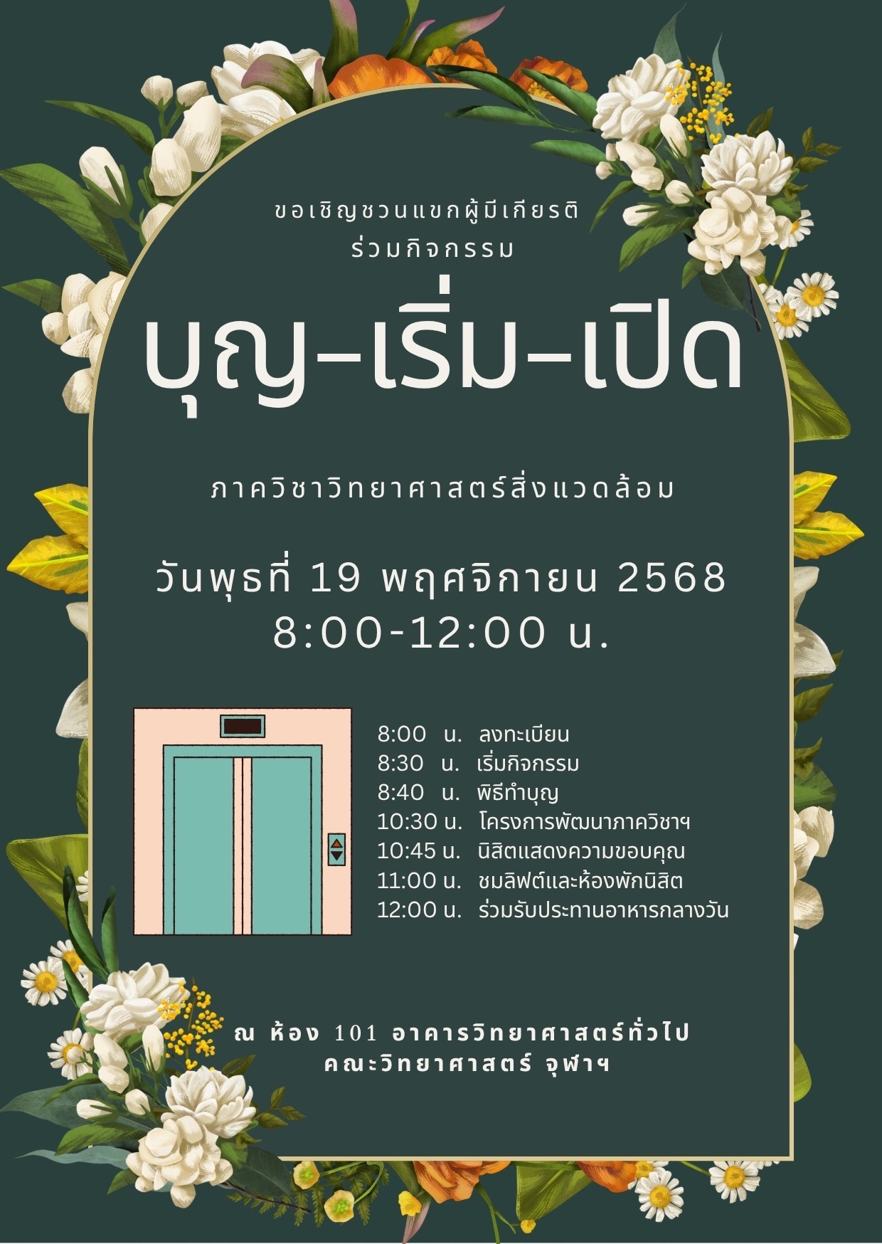ขอเชิญร่วมงาน “บุญ-เริ่ม-เปิด” ของภาควิชาวิทยาศาสตร์สิ่งแวดล้อม คณะวิทยาศาสตร์ จุฬาฯ